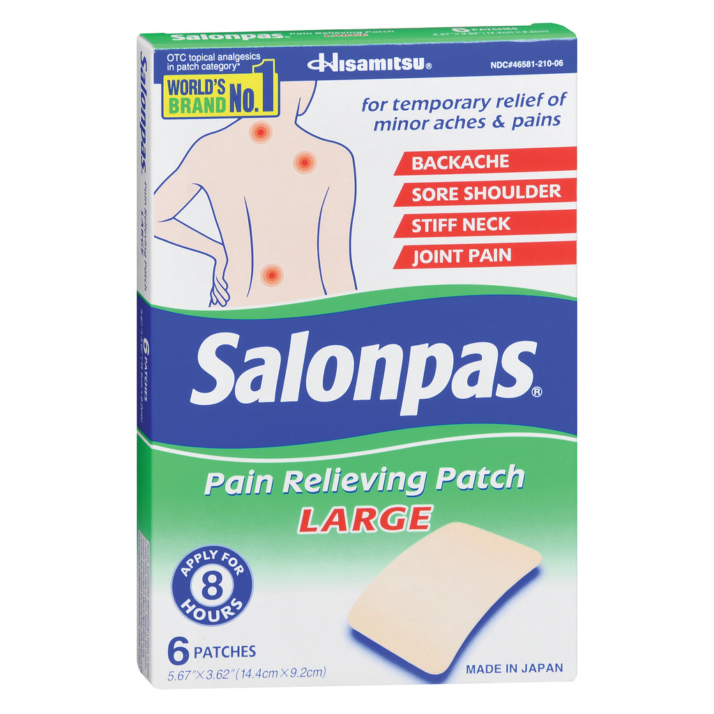 - Salonpas topical patch soothes aches and pains in the neck, shoulders, back and joints.